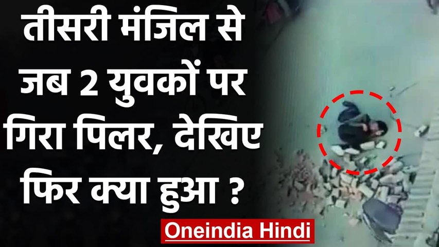 बीच सड़क से गुजर रहे पैदल यात्री पर गिरा निर्माणाधीन खंभा, देखें रौंगटे खड़े करने वाला VIDEO