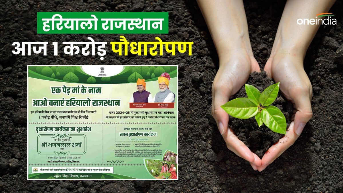 Rajasthan News: राजस्थान में हरियाली तीज का पर्व पर आज सरकार 1 करोड़ पौधे एक साथ लगाने वाली है। मुख्यमंत्री से लेकर कैबिनेट मंत्री, विधायक और प्रभारी सचिव जिलेवार पौधारोपण कार्यक्रम में शिरकत करेंगे।