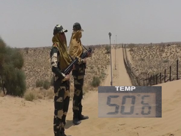 एक तरफ पूरे राजस्थान में सुबह से ही कोना-कोना भट्टी की मानिंद गर्म हो रहा है, वहीं दूसरी ओर भारत-पाक सीमा पर तैनात जवान बुलंद हौसलों से मौसम को मात दे रहे हैं, जो किसी 'जंग' से कम नहीं। भारत-पाकिस्तान अन्तरराष्ट्रीय सीमा की सुरक्षा में तैनात भारतीय सीमा सुरक्षा बल के जवानों का हौसला देखते बन रहा है।
