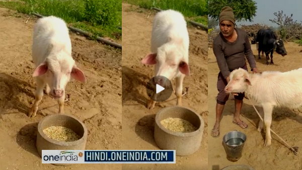 भैंस ने जन्मा सफेद पाड़ा, नाक-कान पिंक कलर के, दूर-दूर से देखने आ रहे लोग, देखिए वायरल वीडियो