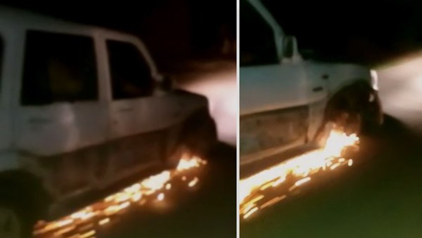 राजस्थान में सड़क पर दौड़ रही इस गाड़ी के तीन टायर पंक्चर हो चुके हैं। हवा निकलने की वजह से टायर पूरी तरह से घिस चुके हैं और रिम के सड़क से रगड़ जाने के कारण चिंगारियां निकल रही हैं। राजस्थान का यह हैरतअंगेज वीडियो तेजी से सोशल मीडिया पर वायरल हो रहा है। ये वायरल वीडियो राजस्थान के भरतपुर जिले का है। यहां देर रात को एक स्कॉर्पियो गाड़ी में सवार कुछ बदमाश पुलिस की नाकाबंदी तोड़कर भाग गए। इस पर पुलिस ने उनका पीछा करना शुरू किया।