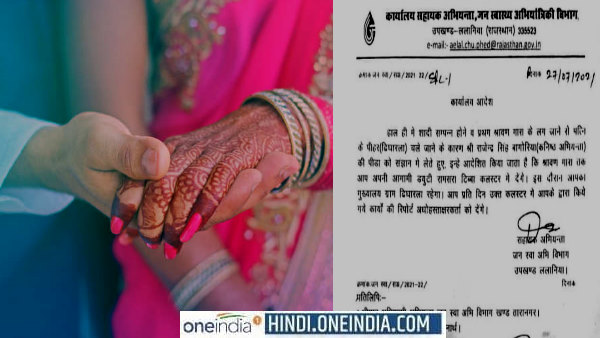 27 जुलाई 2021 को जारी आदेश में लिखा है कि 'हाल ही में शादी सम्पन्न होने व प्रथम श्रावण मास के लग जाने से पत्नी के पीहर गांव ढिघारला चले जाने के कारण कनिष्ठ अभियंता राजेंद्र सिंह बागोरिया की पीड़ा को सज्ञान में लेते हुए इन्हें आदेशित किया जाता है कि श्रावण मास तक आप अपनी आगामी ड्यूटी रामसरा टिब्बा कलस्टर में देंगे। इस दौरान आपका मुख्यालय ग्राम ढिघारल रहेगा। आप प्रति दिन उक्त कलस्टर में आपके द्वारा किए गए कार्यों की रिपोर्ट अधोहस्ताक्षरकर्ता को देंगे'