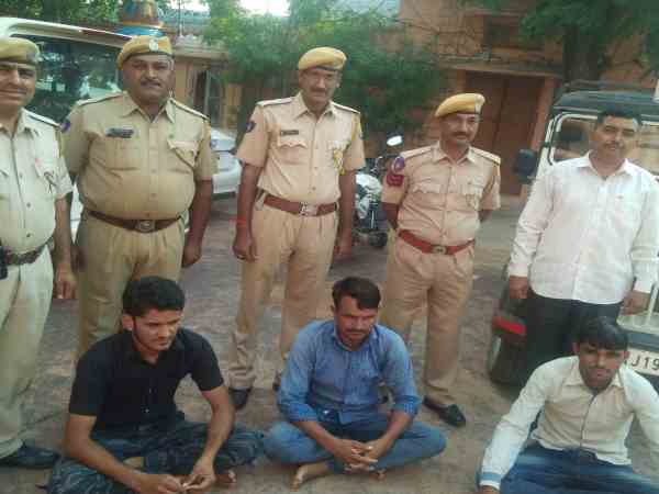 थानाधिकारी ने कहा कि बदमाशों ने व्यवसायी सुमेरराम को दुष्कर्म का मुकदमा दर्ज करवाने की बात कहकर उससे दो सोने की चैन, एक ब्रेसलेट, 6 अंगुठियां और 25 हजार रुपए नगद छीन लिए साथ ही 15 लाख रूपए ओर देने की मांग की। व्यवसायी सुमेरराम ने जब पन्द्रह लाख अपने परिचित से दिलवाने की बात कही और बदमाशों से बात करवाई तब जाकर उसे छोड़ा गया। पीड़ित ने सीधे थाने आकर मामले की रिपोर्ट दर्ज करवाई। थानाधिकारी राजपुरोहित ने कहा कि पीड़ित सुमेरराम को किए गए फोन-कॉल व नाम के आधार पर उन्होंने युवती के साथ तीन बदमाशों को दबोच लिया। पकड़े गए बदमाशों में गंगाड़ी निवासी रूपाराम , बाड़ेमर निवासी हाल तिवरी में रहने वाले नाथूराम, ओसियां निवासी हापुराम और बडला बासनी निवासी रेखा माली है।