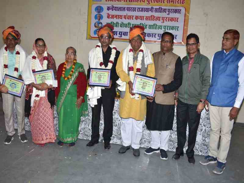 इस दौरान अजमेर के डॉ. चन्द्रप्रकाश देवल को कन्हैयालाल पारख राजस्थानी साहित्य पुरस्कार प्रदान किया गया। पुरस्कार के रूप में उन्हें 51 हजार रुपये, सम्मान पत्र, शॉल, श्रीफल भेंट किया गया। इसी प्रकार कोटा के अतुल कनक को उनके उपन्यास 'छेकड़लो रास' के लिए 11 हजार रुपये का बैजनाथ पंवार कथा साहित्य पुरस्कार, जोधपुर की जेबा रशीद को उनकी कविता पुस्तक 'बगत और बायरो' के लिए 11 हजार रुपये का सावित्री चौधरी खूमसिंह साहित्य पुरस्कार तथा राजपुरा के उम्मेद धानिया को उनकी कहानी पुस्तक 'लेबल' के लिए 5100 रुपये का दुर्गेश युवा साहित्यकार पुरस्कार प्रदान किया गया।