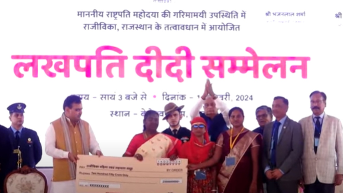 राजस्थान सरकार की राजस्थान ग्रामीण आजीविका विकास परियोजना (राजिविका) की ओर से 'लखपति दीदी योजना' के तहत बेणेश्वर धाम में लखपति दीदी सम्मेलन का आयोजन किया गया है, जिसमें राष्ट्रपति बतौर मुख्य अतिथि शिरकत कर रही हैं। वे यहां करीब 3 घंटा 35 मिनट तक रहेंगी। शाम दिल्ली के लिए रवाना हो जाएंगी।