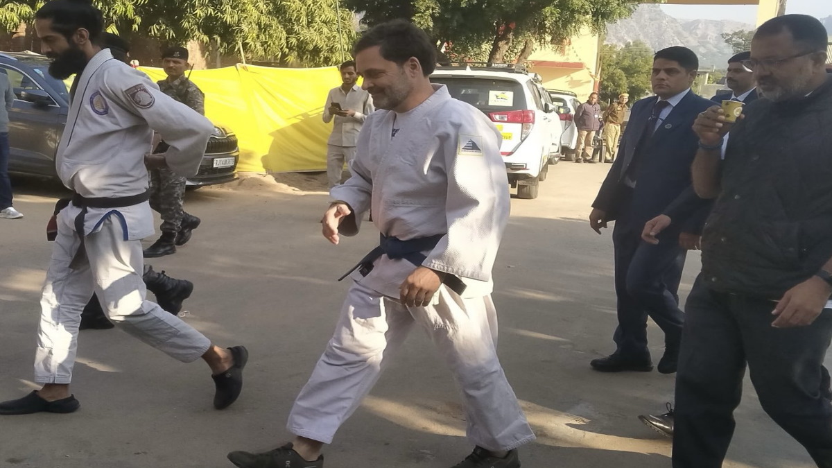 Rajasthan: जयपुर में मार्शल आर्ट की ड्रेस पहन निकले राहुल गांधी, स्कूली बच्चों को सिखाए जूडो कराटे के दांव-पेच