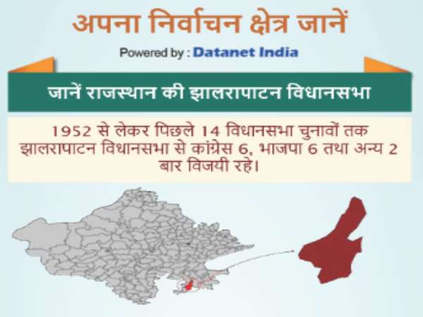 झालरापाटन सीट को लेकर राजनीतिक आंकड़ों की बात करे तो 1952 से अब तक 14 बार चुनाव हुए हैं जिसमें कांग्रेस ने 6, भाजपा ने 6 और 2 बार अन्य पार्टियां विजयी रही हैं। यहां की कुल जनसंख्या 3,91,744 है। इस सीट में निवास करने वाली 70 प्रतिशत जनसंख्या ग्रामीण है जबकि 30 प्रतिशत शहरी है। वहीं धर्म और जाति पर नजर डाले तो 89 प्रतिशत हिन्दू और 10 प्रतिशत मुस्लिम निवास करते हैं। इसके अलावा सामाजिक समूह की बात करें तो अनुसूचित जाति 17.67 प्रतिशत और अनुसूचित जनजाति 8.5 प्रतिशत है।