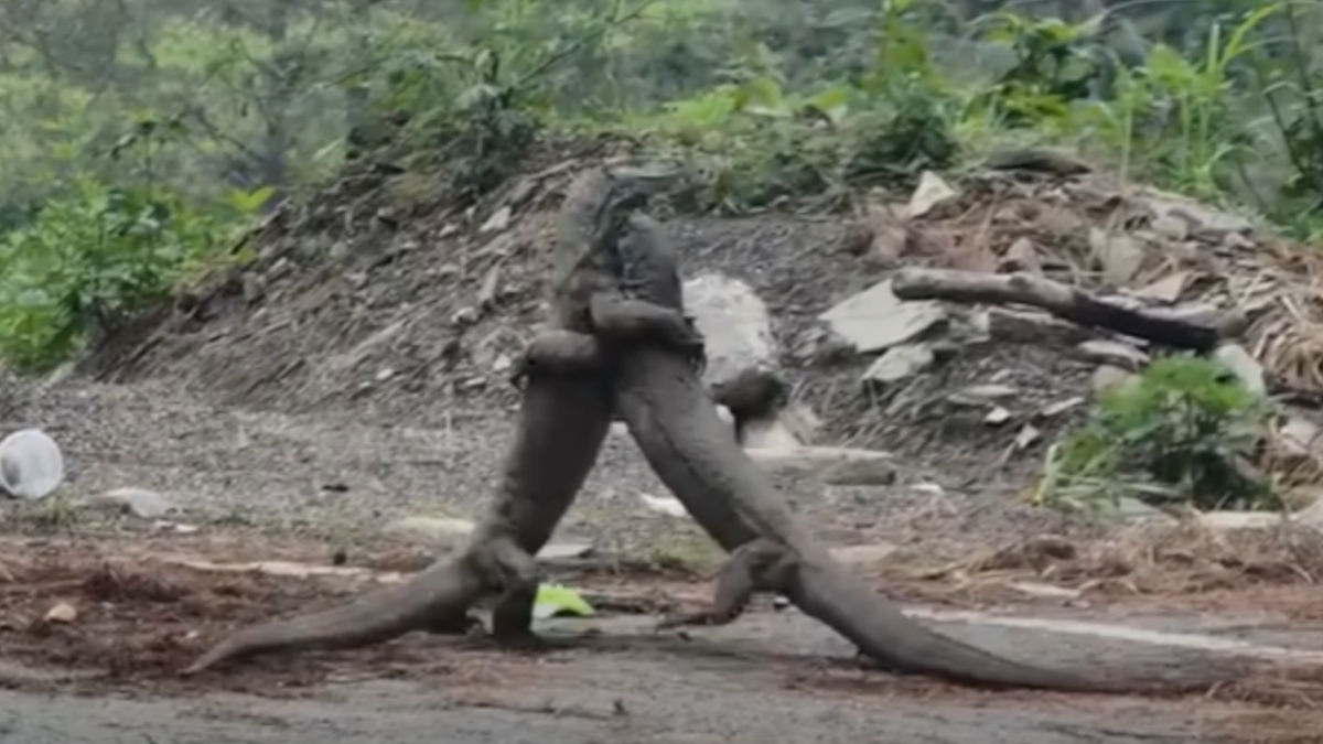 रणथंभौर नेशनल पार्क के पास का एक दिलचस्प वीडियो सोशल मीडिया पर धूम मचा रहा है, जिसमें दो मॉनिटर लिज़र्ड सड़क किनारे एक-दूसरे से ऐसे भिड़ते दिखते हैं, जैसे कोई अखाड़े के दो पहलवान आमने-सामने हों। वीडियो को देखकर हर किसी की आंखें फटी की फटी रह गईं!
