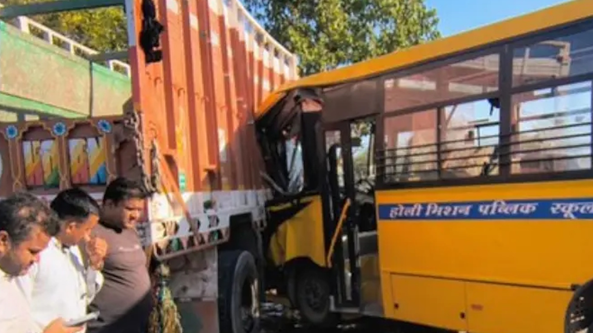 घटना सुबह करीब 9 बजे की है। होली मिशन स्कूल की बस बच्चों और स्टाफ को लेकर जा रही थी। जैसे ही बस कुई चौराहे से आगे बढ़ी, सामने से आ रहे ट्रक ने अचानक होटल की ओर मुड़ने की कोशिश की। ड्राइवर ने साइड मिरर नहीं देखा, जिससे ट्रक और बस की टक्कर हो गई।