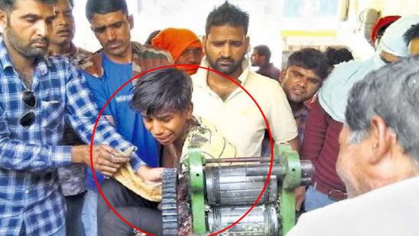 गन्ने की मशीन में दो घंटे तक फंसा रहा हाथ, युवक को मशीन समेत ही ले गए अस्पताल, बाजू तक काटना पड़ा