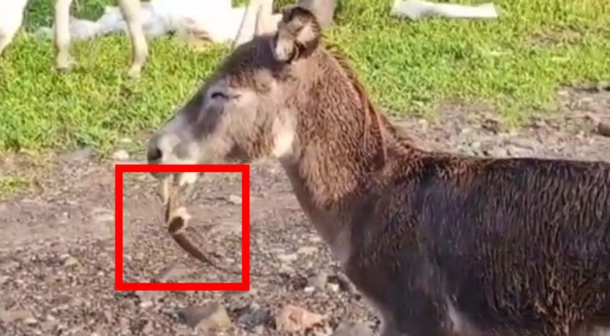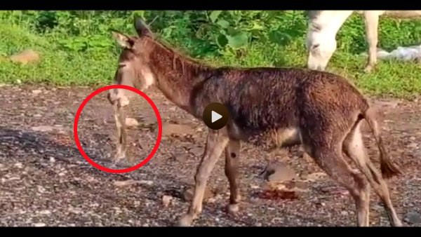 इसके बाद गधा ना तो सांप को निगल पाया और ना ही मुंह से बाहर निकाल पाया। दोनों के बीच एक-दूसरे से पीछा छुड़ाने की जद्दोजहद चलती रही। सांप का आधा हिस्सा गधे के मुंह के अंधर था जबकि आधा बाहर लटक रहा था।