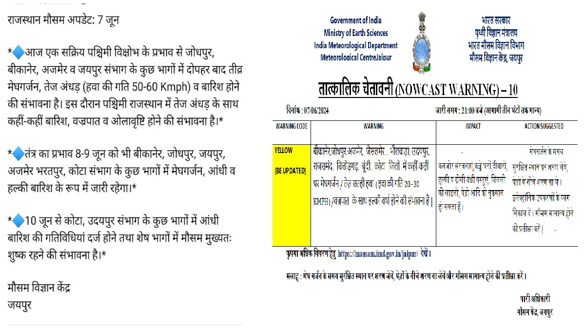 — मौसम विज्ञान केंद्र जयपुर (@IMDJaipur) June 7, 2024