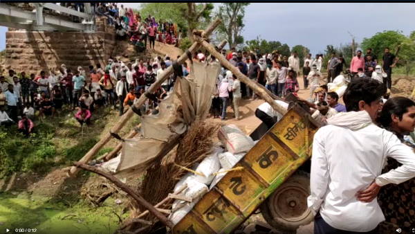 धौलपुर। राजस्थान के धौलपुर जिले के बसेड़ी थाना क्षेत्र के नकटे का पुरा नैरोगेज रेलवे पुल के नीचे कच्चे सड़क मार्ग पर भूसा और गेहूं की फसल से भरी हुई ट्रैक्टर-ट्रॉली बेकाबू होकर नाले में पलट गई। जिसके नीचे ट्रैक्टर चालक और एक अन्य युवक दब गया। दोनों की मौत हो गई। घटना से मौके पर चीख-पुकार मच गई। हादसे को देख स्थानीय ग्रामीणों की मौके पर भारी भीड़ जमा हो गई।