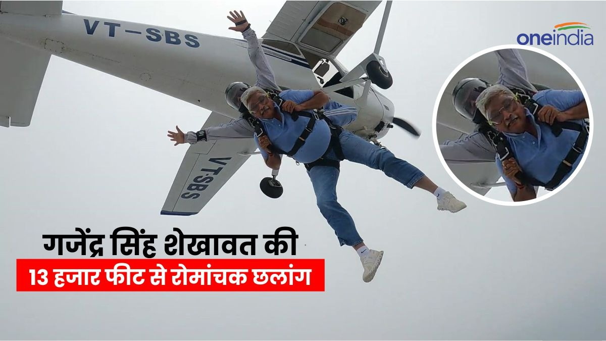 Rajasthan News: केंद्रीय मंत्री गजेंद्र सिंह शेखावत ने 13 हजार फीट ऊपर से लगाई छलांग, देखिए रोमांचक वीडियो