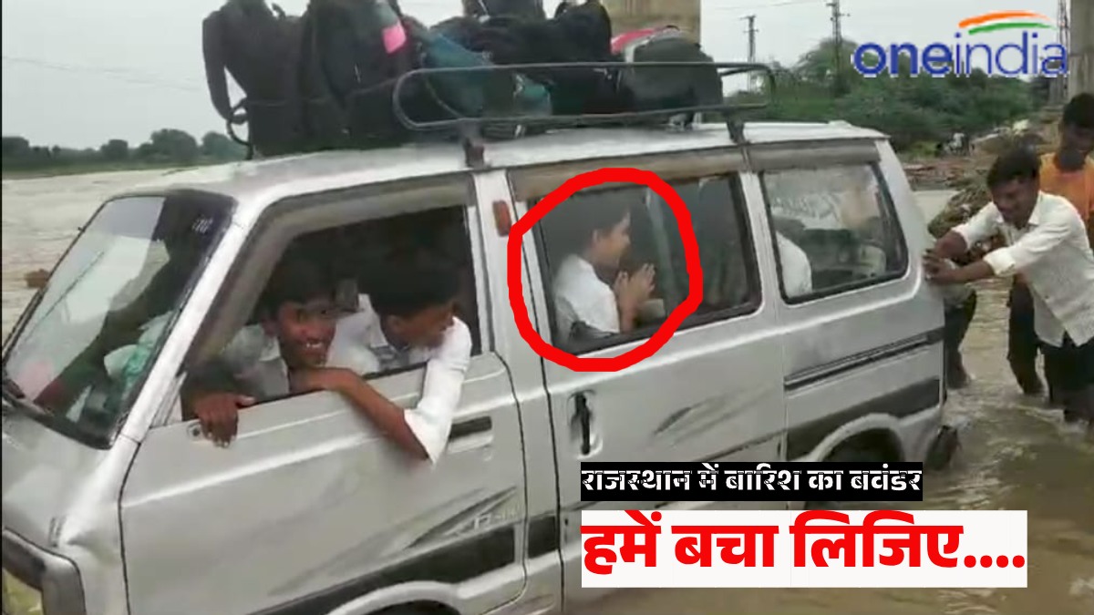 Weather News:बारिश के तेज बहाव पानी में फंसी स्कूली बच्चों से भरी वैन, बच्चों ने जोड़े हाथ,फिर देखिए VIDEO