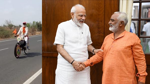 भाजपा के जीतने की खुशी में 1100 किमी साइकिल चलाकर मोदी से मिला ये गुजराती, दीवानगी की कहानी