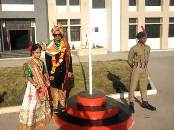 शादी करने से पहेले वर-वधू ने किया ध्वजवंदन