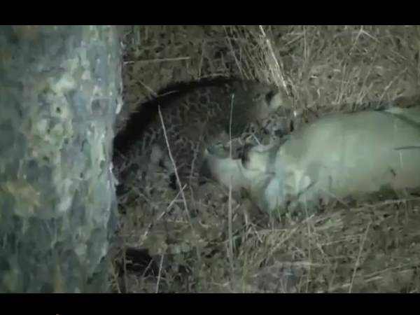 तेंदुए के बच्चे के साथ खेलते हैं शेरनी के बच्चे