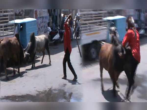 वीडियो में दिख रहा है कि बीच बाजार दो सांड़ आपस में लड़ रहे हैं। उनके पास में ही वाहन खड़े हैं, तभी एक शख्स लाठी लेकर वहां आता है। वह शख्स लाठी मारकर उन्हें अलग-अलग करना चाहता है, वो दोनों पीछे हट तो जाते हैं, लेकिन उनमें से एक सांड़ उस शख्स पर ही हमला कर देता है। टक्कर लगते ही वह शख्स वहीं सड़क पर गिर जाता है। वह सांड सींग से उसे मारता रहता है। बताया जाता है कि, बाद में लोगों ने किसी तरह उस शख्स को सांड़ के चंगुल से छुड़ाया। यह मामला भावनगर का है।