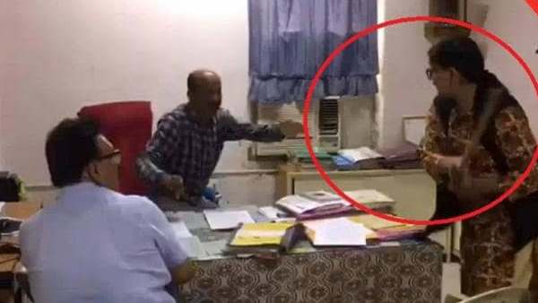 VIDEO: हाथ में लाठी लेकर दफ्तर आ गई भाजपा कॉर्पोरेटर, रौद्र रूप देख कुर्सी छोड़ गए अधिकारी