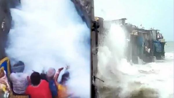 'वायु' से बेखबर होकर लहरों का मजा ले रहे थे ये लोग, वीडियो में देखिए क्या हाल हुआ