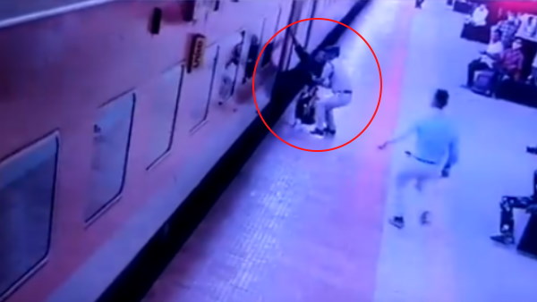 दरअसल, रांची रेलवे स्टेशन पर एक महिला हाथों में बैग लिए चलती ट्रेन में चढ़ने की कोशिश कर रही थी। तभी उसका बैलेंस बिगड़ गया। महिला ट्रेन और प्लेटफॉर्म के बीच गिरने ही वाली थी कि तभी प्लेटफार्म पर मौजूद रेलवे सुरक्षा बल (RPF) के जवान की नजर पड़ी। जवान ने तुंरत दौड़ लगाई और महिला को बचा लिया। वहां मौजूद एक शख्स और महिला को बचाने को दौड़ता है।