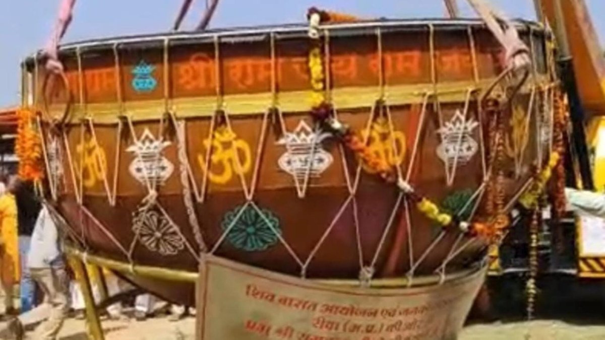 राम के चरणो में समर्पित हुआ एशिया का सबसे बड़ा नगाड़ा,101 वाहनों के काफिले के साथ पहुंचा अयोध्या