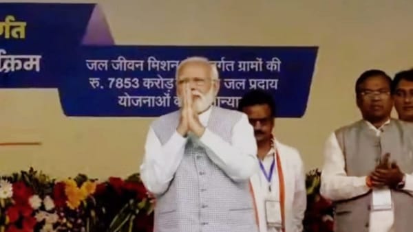 प्रधानमंत्री ने यहां से 2300 करोड़ के रेल प्रोजेक्ट्स और 7853 करोड़ रुपए की 5 नल-जल योजनाओं का लोकार्पण और शिलान्यास किया।