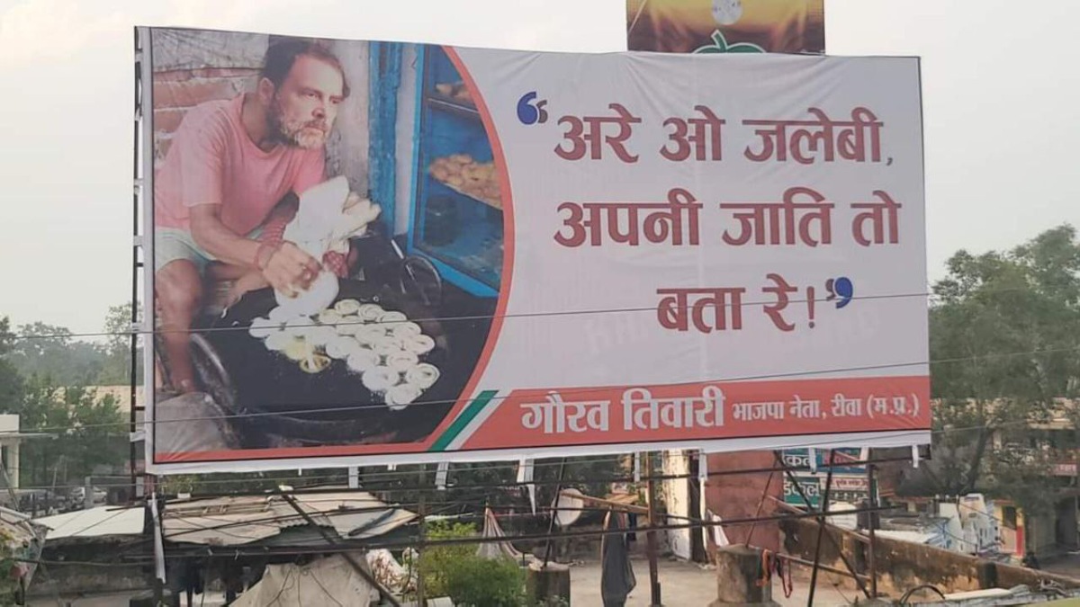 'अरे जलेबी, अपनी जाति तो बताओ', बीजेपी नेता ने राहुल गांधी की जलेबी बनाते हुए चौराहे पर लगाई होर्डिंग