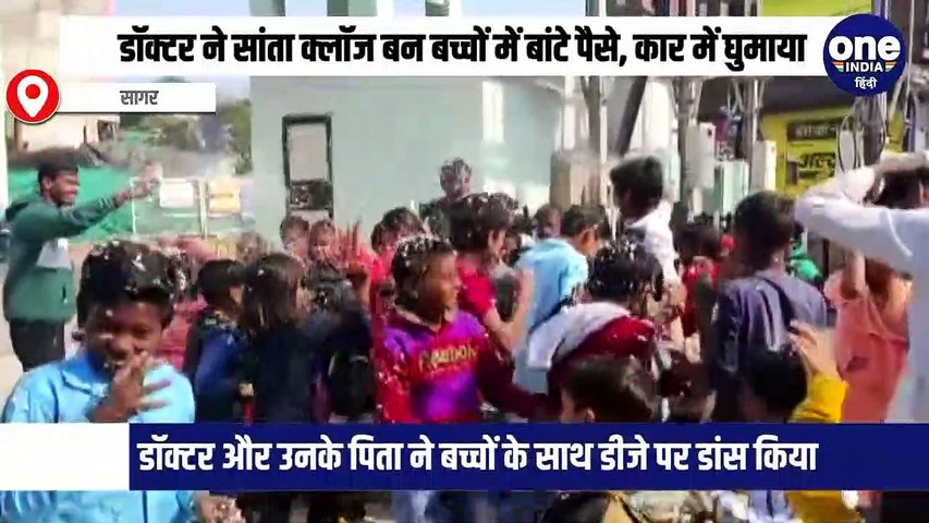Christmas 2022: मप्र के सागर में बुंदेलखंड मेडिकल कॉलेज में पदस्थ एक सीनियर डॉक्टर ने क्रिसमस पर अनूठी पहल की है। उन्होंने अपने पिता व कॉलेज व स्टाफ संग गरीब बच्चों के बीच पहुंचकर उन्हें मिठाइयां बांटी, उनके साथ डांस किया, उन्हें अपनी कार में घुमाया और डांस करते हुए उन पर 25 हजार से अधिक रुपए भी लुटा दिए।