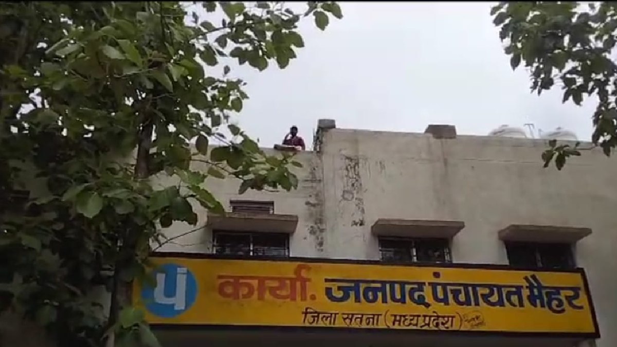 Satna news: मैहर जनपद कार्यालय की छत पर चढ़ा उपसरपंच, फांसी लगाने का हाईवोल्टेज ड्रामा, video