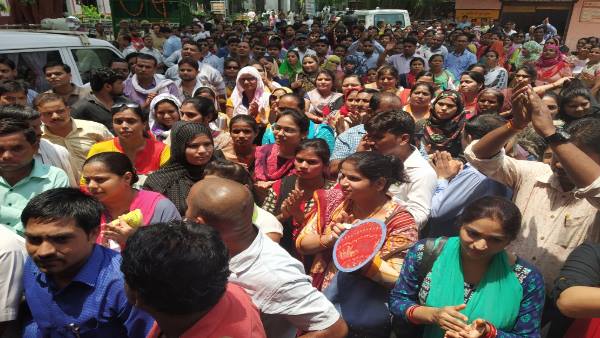 दरअसल थाना सदर बाजार क्षेत्र खिरनीबाग रामलीला मैदान में शुक्रवार को सैंकड़ों की तादाद में अनुदेशकों का इकट्ठा होना शुरू हो गया। उसके बाद उन्होंने जमकर नारेबाजी की। उसके बाद सभी अनुदेशक रैली निकालकर कलेक्ट्रेट परिसर पहुंचे। जहां उन्होंने सिटी मजिस्ट्रेट को ज्ञापन सौंपा। इन सरकारी कर्मचारियों को पिछले 6 माह से वेतन नहीं मिला है। उनके परिवार भुखमरी की कगार पर पहुंच गए हैं। उनकी मांग है कि हमें अब 17 हजार रुपए वेतन चाहिए। ये हमारा हक है, क्योंकि अब कोर्ट ने भी इस मोहर लगा दी है। अपना दर्द सुनाकर कई महिलाएं रोने भी लगीं। इनमें एक अनुदेशक ऐसी थी जिसको पति ने छोड़ दिया था और उसके पास खर्चे के लिए पैसे नहीं थे। उसका कोर्ट में मुकदमा चल रहा है। उसका कहना है कि आखिर हम पैसे किस्से मांगे। अनुदेशकों ने मांगे पूरी न होने पर परिवार समेत आत्मदाह की धमकी दी है।