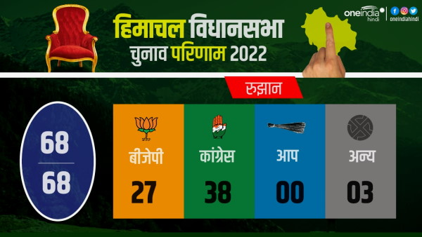 Himachal Pradesh Election 2022 Results (हिमाचल प्रदेश विधानसभा चुनाव परिणाम) Hindi News : 68 सीटों वाले हिमाचल प्रदेश में 8 दिसम्बर को सुबह आठ बजे से विधानसभा चुनाव 2022 के मतों की गणना जारी है। अब तक के रुझान में हिमाचल प्रदेश के एग्जिट पोल के नतीजे सही साबित होते दिख रहे हैं। यहां पर बढ़त में कांग्रेस प्रत्याशियों ने बहुमत के जादुई आंकड़े को पार कर लिया है। हिमाचल प्रदेश में 68 सीटों में बहुमत का आंकड़ा 35 सीट हैं जबकि कांग्रेस प्रत्याशी 38 सीटों पर बढ़त बनाए हुए हैं। ऐसे में पहाड़ में एक बार फिर से कांग्रेस सरकार बनने की ओर है।