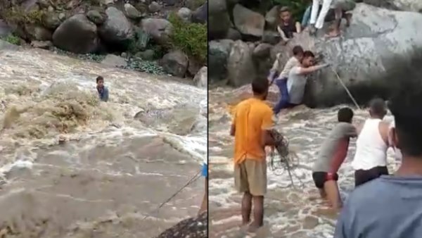 पहाड़ों के बीच नदी के बहाव में बह रहे थे 4 मासूम, मसीहा बनकर आए लोगों ने जान पर खेलकर यूं बचाई जान