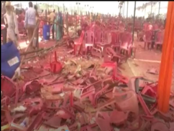 घटनास्थल पर सैकड़ों कुर्सियां टूटकर बिखर गईं। भाजपा कार्यकर्ताओं ने स्थिति पर नियंत्रित करने की कोशिश की मगर, आंधी-धूल से वहां लोग रुक नहीं पाए। पंडाल गिरने की बड़ी वजह यह रही कि एक पंडाल का पाइप निकलकर पर्दे के ऊपर गिर गया था। जिसके बाद लोग खुद को बचान की कोशिश में बेकाबू हो गए। हालांकि, गनीमत रही कि इस अफरा-तफरी में कोई हताहत नहीं हुआ। न ही किसी को चोटें आने की जानकारी मिल पाई है।