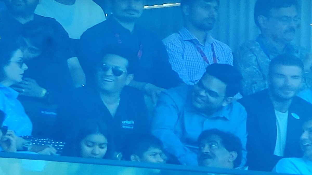 इंग्लैंड के पूर्व दिग्गज फुटबॉलर डेविड बेकहम वर्ल्ड कप का सेमीफाइनल देखने पहुंचे हैं। फुटबॉलर के अलावा सचिन तेंदुलकर भी वानखेड़े की बालकनी में दिखाई दिए। वहीं बॉलीवुड एक्टर्स का भी स्टेडियम में जमावड़ा देखा गया है।