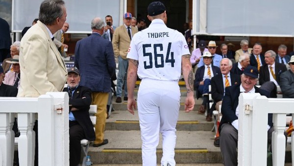 नई दिल्ली। इंग्लैंड और न्यूजीलैंड के बीच विश्व टेस्ट चैम्पियनशिप के तहत खेली जाने वाली 3 मैचों की टेस्ट सीरीज का आगाज गुरुवार से हुआ, जिसका पहला मैच लॉर्डस के मैदान पर खेला जा रहा है। इस मैच के साथ ही इंग्लैंड के हरफनमौला खिलाड़ी बेन स्टोक्स ने टेस्ट टीम की नियमित रूप से कमान संभालने का काम भी किया है। लॉर्डस के मैदान पर जब कप्तान बेन स्टोक्स टॉस के लिये पहुंचे तो वो एक खास टी-शर्ट पहने हुए नजर आये, जिसके पीछे थोर्पे लिखा हुआ था तो वहीं पर 564 नंबर भी अंकित था।
