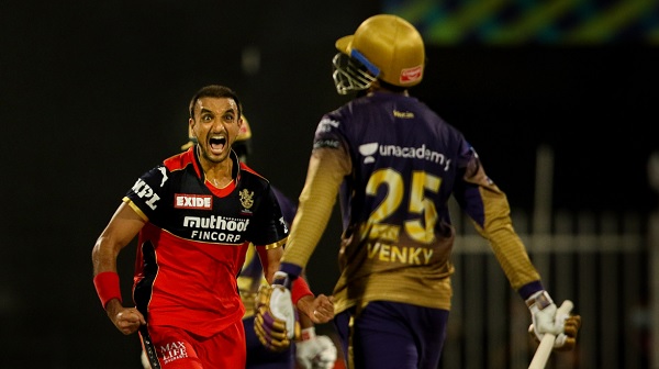 हर्षल ने अपने पहले दो ओवरों में एक भी रन नहीं दिया, जिसके दौरान उन्होंने केकेआर की मुश्किलों को बढ़ाते हुए बिलिंग्स और रसेल को आउट किया।