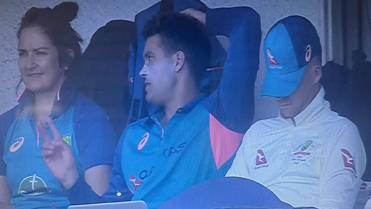 पीटर हैंड्सकॉम्ब की एक फोटो सोशल मीडिया पर वायरल हो रही है, जिसमें वो एलेक्स कैरी के साथ में बैठे हैं और कुर्सी पर बैठे-बैठे ही अपनी टोपी से मुंह ढककर सो रहे हैं। यह फोटो उस वक्त की है, जब तक हैंड्सकॉम्ब बल्लेबाजी के लिए नहीं आए थे। स्टीव स्मिथ का विकेट गिरने के बाद पीटर हैंड्सकॉम्ब बल्लेबाजी के लिए मैदान पर उतरे और दिन का खेल खत्म होने तक वो 36 गेंदों में 7 रन पर बल्लेबाजी कर रहे थे। हैंड्सकॉम्ब के साथ कैमरून ग्रीन भी 6 रन बनाकर क्रीज पर डटे हुए हैं।