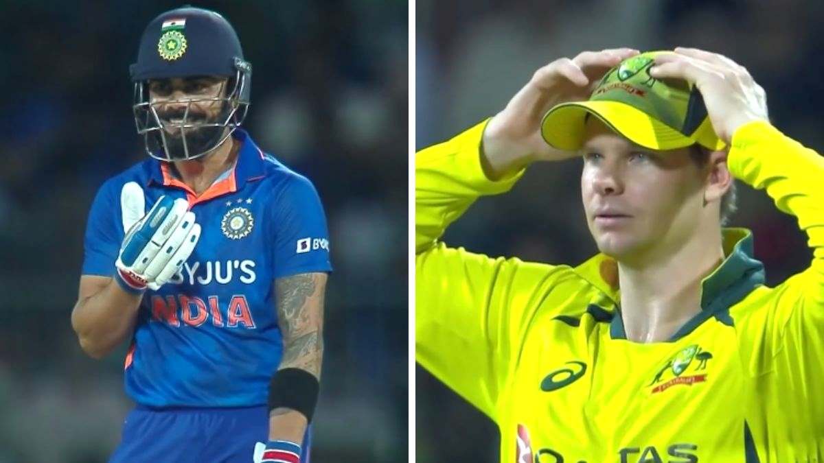 Virat Kohli laughs on Steve Smith: स्टीव स्मिथ ने भारत दौरे पर आने के बाद टेस्ट और वनडे सहित कुल 5 मैचों में कप्तानी की और तीन में जीत दर्ज की। टीम इंडिया को ऑस्ट्रेलिया ने चेन्नई एकदिवसीय मुकाबले में पराजित करते हुए तीन मैचों की सीरीज में 2-1 से जीत दर्ज कर ली। भारतीय टीम के लिए विराट कोहली ने इस मुकाबले में फिफ्टी जमाई। कोहली को आउट करने के लिए स्टीव स्मिथ का एक फैसला चर्चा का विषय बन गया। विराट कोहली भी स्मिथ के इस कारनामे को देखकर मैदान पर हँस पड़े।