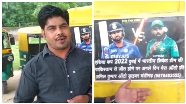 सोशल मीडिया पर इन दिनों एक वीडियो वायरल हो रहा है। इस वीडियो में ऑटो ड्राइवर अनिल कुमार ने अपनी ऑटो पर एक पोस्टर लगाया हुआ है। इस पोस्टर में लिखा है, एशिया कप 2022 दुबई में भारतीय क्रिकेट टीम की पाकिस्तान से जीत होने पर अगले दिन मेरा ऑटो फ्री, अनिल कुमार ऑटो ड्राइवर चंडीगढ़। इसके साथ ही वीडियो में सुना जा सकता है कि यदि भारत ने पाकिस्तान के खिलाफ सुपर 4 का मुकाबला जीत लिया तो इसके अगले दिन वह सभी को फ्री में अपनी ऑटो से सैर कराएंगे। पिछले रविवार को जब भारत ने पाकिस्तान को हराया था तब भी अनिल ने ऐसा ही किया था। उस समय उन्हें भरोसा था कि भारत-पाकिस्तान की टीमें फिर से टकराएंगी, इसी कारण उन्होंने ऑटो से पोस्टर नहीं निकाला था।