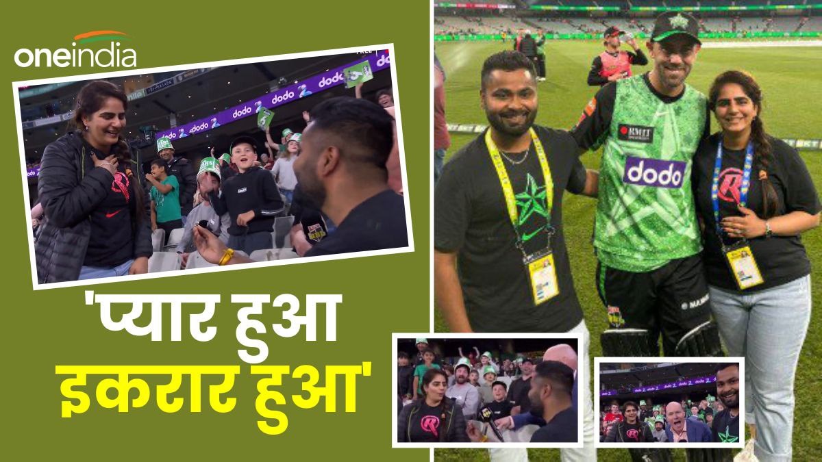 घुटने पर बैठकर किया ये काम: दरअसल, मैच के दौरान चैनल 7 के होस्ट इस कपल के पास पहुंचे। दोनों ने अलग-अलग टीमों की टी-शर्ट पहन रखा था। लड़का मेलबॉर्न स्टार्स का फैन था। जबकि लड़की मेलबर्न रेनेगेड्स की टी-शर्ट पहने हुए मैच देखने आई थी। दोनों ही अलग-अलग टीम को सपोर्ट कर रहे थे। लेकिन ग्लेन मैक्सवेल को दोनों ने अपना पसंदीदा खिलाड़ी बताया। होस्ट लड़के से मेलबर्न स्टार्स के बारे में पूछ ही रहे होते हैं इसी दौरान लड़का वहां घुटने पर बैठकर अपनी गर्लफ्रेंड को प्रपोज कर देता है।