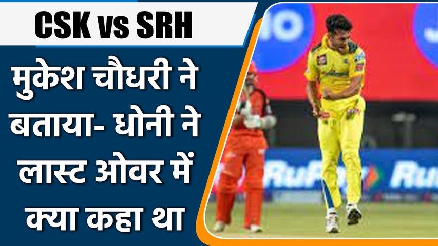 सनराइजर्स हैदराबाद को अंतिम ओवर में जीत के लिए 38 रन बनाने थे। 20वें ओवर के बारे में बात करते हुए मुकेश चौधरी बताते हैं कि महेंद्र सिंह धोनी ने उनसे क्या कहा था। वे कहते हैं, महेंद्र सिंह धोनी ने मुझे कुछ भी स्पेशल नहीं कहा। उन्होंने मुझे बताया कि बॉल को स्टंप टू स्टंप रखना है और कुछ भी खास करने का प्रयास नहीं करना है।