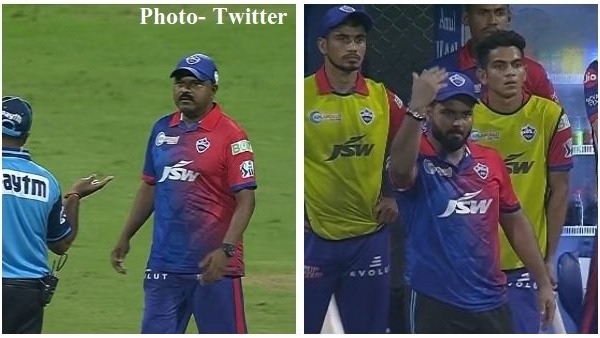 शनिवार रात हुए मुकाबले में जब मैदानी अंपायर ने एक गेंद को नो बॉल नहीं दिया था तो डगआउट में बैठे ऋषभ पंत अपना आपा खो बैठे थे और उन्होंने मैदान पर मौजूद रॉवमन पावेल व कुलदीप यादव की जोड़ी को वापस बुलाने का इशारा किया था। इतना ही नहीं ऋषभ पंत ने अपने कोच प्रवीण आमरे को भी मैदान में अंपायर को समझाने के लिए भेज दिया। प्रवीण आमरे दौड़ते हुए मैदान के अंदर घुसे और एंपायर के साथ बहस भी की।