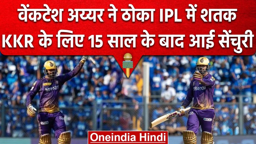 IPL 2023, KKR vs MI: वेंकटेश अय्यर के शतक के साथ आज मुंबई इंडियंस बनाम कोलकाता नाइट राइडर्स का मुकाबला बेहद रोमांचक हो गया है। केकेआर के बल्लेबाज ने एक शानदार पारी खेलते हुए आईपीएल में अपना पहला शतक जड़ दिया है। इस शतक के साथ वेंकटेश आईपीएल 2023 सीजन में 100 रन बनाने वाले पहले भारतीय बल्लेबाज भी बन गए।