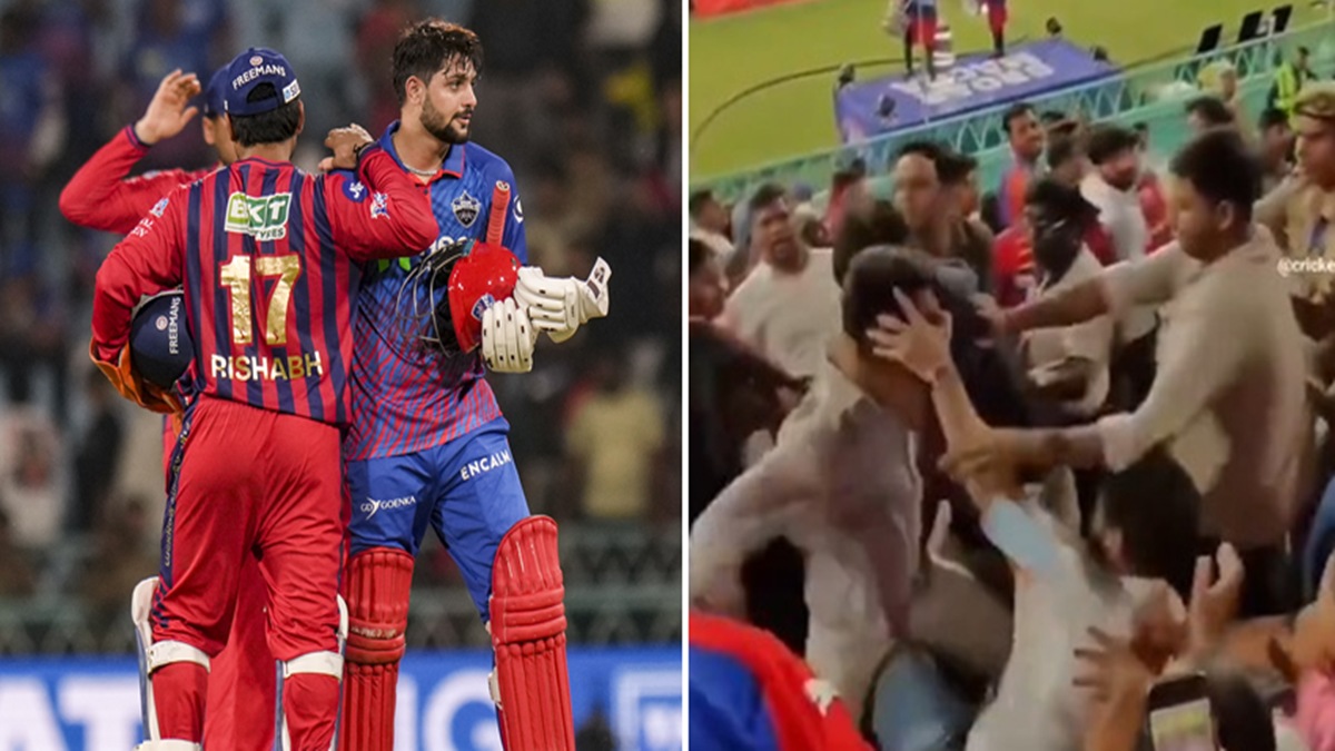 बुधवार को इकाना स्टेडियम में लखनऊ सुपर जायंट्स (LSG) और दिल्ली कैपिटल्स (DC) के बीच खेले गए मुकाबले के दौरान स्टैंड्स अखाड़े में तब्दील हो गए। जब मैदान पर खिलाड़ी रनों के लिए जूझ रहे थे, तब स्टैंड्स में बैठे फैंस आपस में ढिशूम-ढिशूम कर रहे थे। इंटरनेट पर जंगल की आग की तरह फैले एक वीडियो ने क्रिकेट फैंस को चौंका दिया है। वीडियो में दो युवक आपस में इस कदर भिड़े कि एक-दूसरे पर मुक्कों की बरसात कर दी।