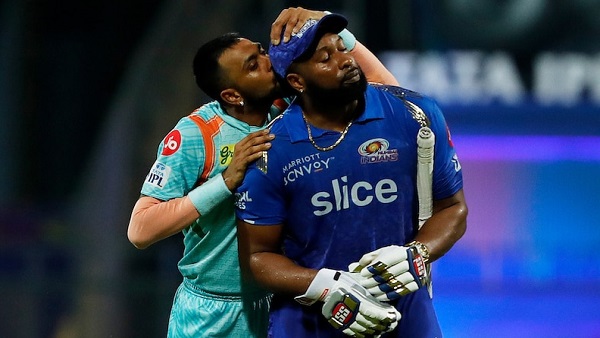 नई दिल्ली। क्रुणाल पांड्या ने आईपीएल सीजन-15 के 37वें मुकाबले में मुंबई इंडियंस के खिलाफ शानदार गेंदबाजी की, जिसकी बदाैलत लखनऊ सुपर जायंट्स ने 36 रनों से मुकाबला जीत लिया। क्रुणाल ने 4 ओवर में महज 19 रन देकर 3 कीमती विकेट निकाले। इसमें एक विकेट किरोन पोलार्ड का भी रहा, जो 20 गेंदों में 19 रन बनाकर आउट हुए। इस बीच पोलार्ड को आउट कर क्रुणाल की खुशी का ठिकाना नहीं रहा।