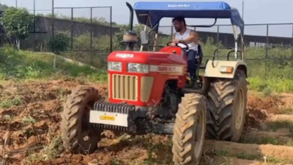 माही ने ट्रैक्टर से की खेत की जुताई