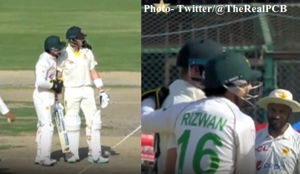 इस दौरान उस्मान ख्वाजा ने 160 रनों की पारी खेली जबकि स्टीव स्मिथ ने 72 रन बनाए। निचले क्रम पर एलेक्स हेल्स ने 93 रनों का योगदान दिया। इस टेस्ट में विकेटकीपिंग की दुनिया के नए हीरो मोहम्मद रिजवान कीपिंग कर रहे थे। पिच रन बरसा रही थी और गेंदबाज पसीने छुड़ा रहे थे कि एक घटना सबका ध्यान खींच गई। यहां मोहम्मद रिजवान खुद स्टीव स्मिथ से पूछ रहे थे कि उनके खिलाफ डीआरएस की अपील लेनी चाहिए या नहीं। यह पहले दिन का तीसरा सेशन चल रहा था तब नौमान अली ने स्मिथ को छकाने में सफलता हासिल की और पाकिस्तान को विकेट की महक आने लगी।