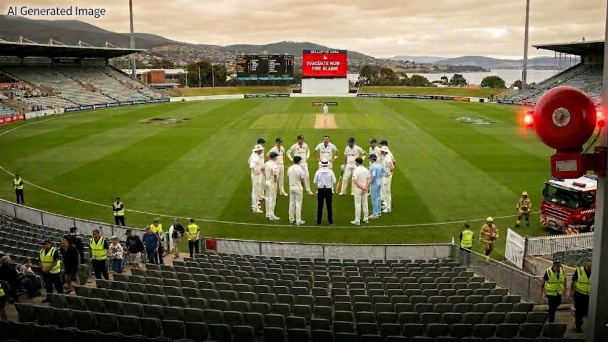 ऑस्ट्रेलिया के घरेलू क्रिकेट टूर्नामेंट शेफील्ड शील्ड के दौरान एक बेहद अजीबोगरीब घटना घटी। होबार्ट के बेलरिव ओवल (Bellerive Oval) मैदान पर तस्मानिया और न्यू साउथ वेल्स के बीच चल रहे मुकाबले को अचानक रोकना पड़ा। वजह कोई बारिश या खराब रोशनी नहीं, बल्कि मैदान पर गूँजता फायर अलार्म था।